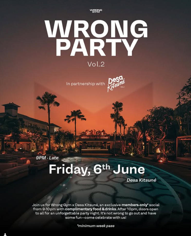 Wellness is also about letting your wild spirit roam free… What better way to announce our partnership with Canggu’s trendiest venue than with our first-ever Wrong Party.